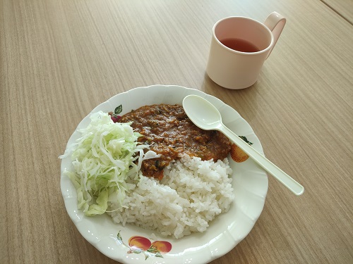 人参、たまねぎ、お肉はもちろんですが、大根やピーマンなど普段カレーにいれないようなものも入れて作りました。味はとても美味しくおかわりする人もいてみんな大満足の昼食になりました。